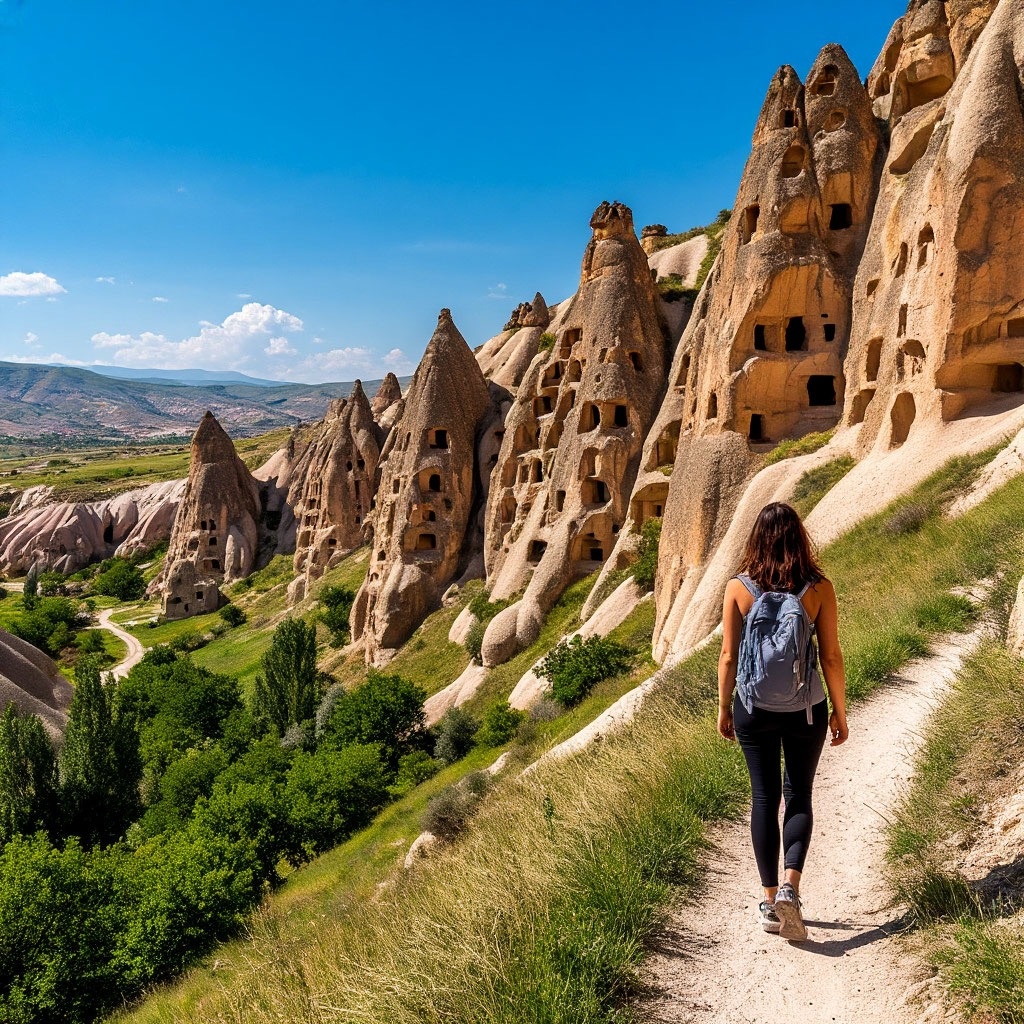 Я вышла из долины через несколько часов, поднявшись на холм, откуда открывался потрясающий вид. Вся долина лежала как на ладони — скалы с тысячами окон, зелень, небо. Где-то вдалеке уже поднимались воздушные шары с туристами. Я села на камень, достала воду и просто сидела, глядя на эту красоту. Голубиная долина оказалась не просто туристической тропой, а местом, где чувствуешь связь человека и природы. Люди строили для птиц, птицы помогали людям. И сейчас, глядя на эти скалы, я чувствовала эту древнюю связь. Спасибо вам, голуби, за этот день.