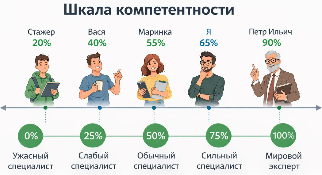 Как часто мы говорим себе что-то вроде: "Я неудачник". Формулировки могут быть разными - "я ужасный специалист", "я плохой родитель", "я хуже других". Мозг в такие моменты работает очень примитивно: вы либо идеальны, либо полная бездарность. Других вариантов как будто не существует. В когнитивно-поведенческой терапии для таких случаев есть довольно простая техника, которую описывает Роберт Лихи - когнитивный континуум. Она помогает преодолеть черно-белое мышление и увидеть, что между крайностями существует много промежуточных вариантов. Смысл техники в том, что нашему мозгу проще делить мир на две категории: "успех или провал", "гений или посредственность". Это становится особенно актуально в тревоге или депрессии - мы склонны воспринимать даже обычные неприятности как катастрофу. В реальности же между двумя крайностями есть множество промежуточных состояний. Если представить шкалу от нуля до ста, то на полюсах будут две крайности, а между ними другие состояния, которые важно прояснить
