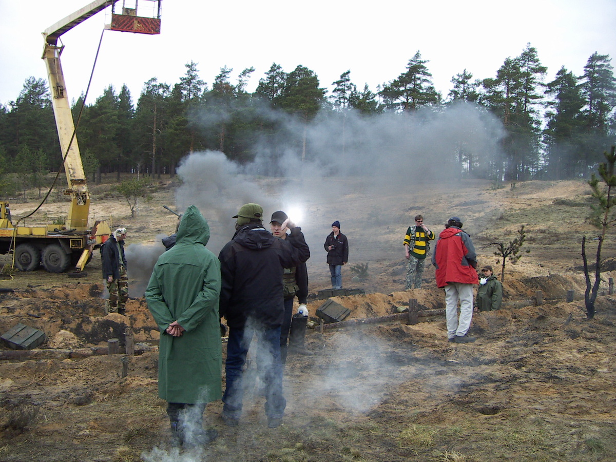 Подготовка к съёмкам кипела. Подвезли горы реквизита: ящики с бутафорскими гранатами-«лимонками», катушки колючей проволоки, потертые планшеты. И, конечно, игровое оружие Мосинки и немецкие Mauser 98k, которые стреляли только холостыми, но грохот создавали оглушительный. Апофеозом стали танки. Из Москвы, на огромных трейлерах, привезли три «немца» – переделанные под «Пантеры» или «Тигры» из Т-55. Один, правда, потеряли по дороге. Буквально. Перед самым полигоном колонна переезжала через железнодорожный переезд, и от встряски танк съехал с платформы, сполз гусеницами на шпалы и замер, угрожающе накренившись. Сколько было шуму и паники! Больше всех орал в свой мобильник художник по игровому транспорту, Мишка, закатывая истерику: «Отмените все электрички! На переезде стоит немецкий танк, я не шучу! Вы что, не понимаете?! ТАНК!» В общем, дух большой киношной авантюры витал в воздухе.