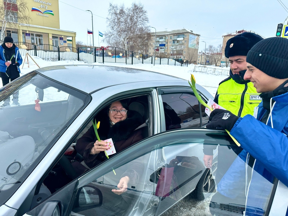 Они останавливали машины и дарили им цветы. В Международный женский день, когда природа пробуждается от зимнего сна, а сердца наполняются теплом и радостью, комитет по делам молодежи совместно с инспекцией ГИБДД орнанизовали ежегодную акцию «Цветы для автоледи». Целью мероприятия стало выражение признательности и благодарности прекрасным дамам, которые ежедневно управляют автомобилями и вносят свой вклад в безопасность дорожного движения. В рамках акции женщины-водители получили не только тюльпаны, но и памятные открытки, которые станут приятным напоминанием о проявленном внимании.