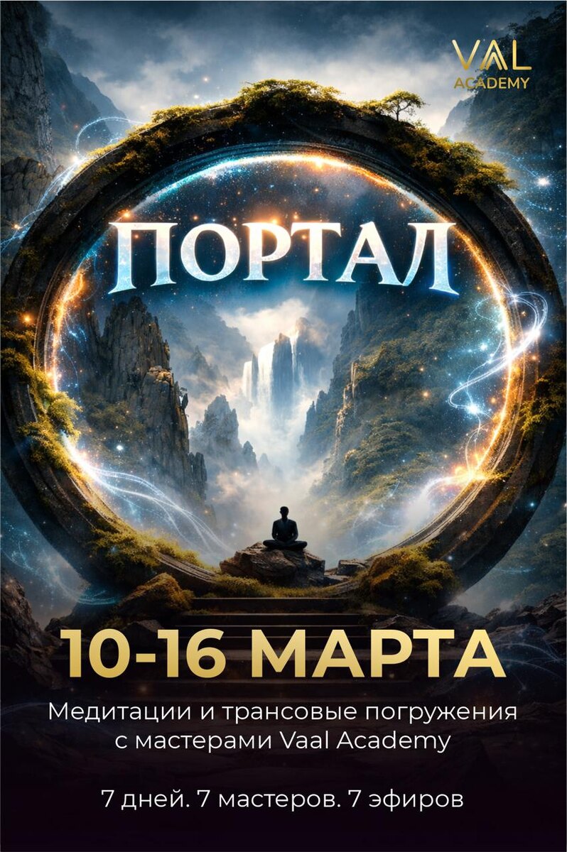 💜 Мир сейчас вибрирует на частоте тревоги. Новости, скорость изменений, неопределённость всё это давит на психику каждый день. Люди не знают, как успокоить внутренний шум, когда вокруг всё нестабильно. Большинство либо замирает, либо убегает в бесконечную занятость. Именно поэтому мы запускаем ПОРТАЛ. Не чтобы объяснить тревогу, а чтобы ты вышела за её пределы. Через медитации, через глубину. Туда, где тишина уже есть. 📅 10 - 16 марта | каждый день в 20:00 мск 7 дней. 7 мастеров. 7 эфиров. 1 день — 1 мастер — 1 погружение Трансовые медитации и глубинные погружения с сильнейшими Мастерами Vaal Academy - каждый день живым голосом, без записей. ⏰ Заводи будильник в 20:00 📲 Заходи в канал: https://dzen.ru/id/624490f14bd92578679eb637 🎁 Сделай репост этого поста с картинкой на канал https://dzen.ru/id/624490f14bd92578679eb637 в соцсетях и сторис и получи личного архитектора ВААЛЯ "В КОНТАКТЕ С РЕАЛЬНОСТЬЮ" Скидывай скрин публикации в Службу Заботы @academy_vaal 🙏 ——— Приглашай