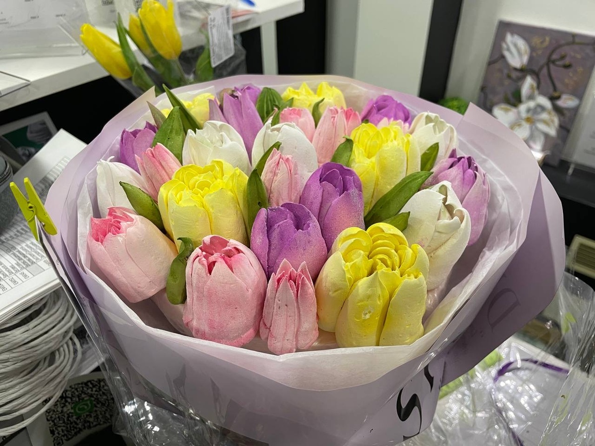 А у нас в салоне вкусный букет из тюльпанов из зефира 😍😍😍 спасибо всем причастным 🥰