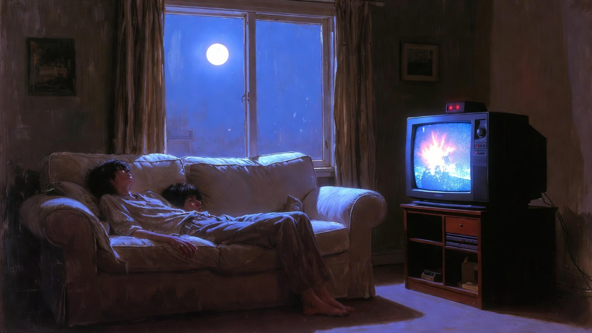 Напротив них, как языческий идол, стоял телевизор. Тяжелый, пузатый, с мутным от времени кинескопом. Красный огонек на кабельной приставке горел ровно и уверенно — маяк в этом мире, путеводная звезда для двух потерянных душ.
