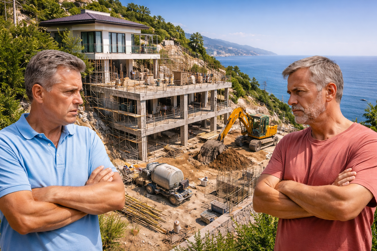 Здравствуйте, это Гулмахмад. Южный берег Крыма кажется спокойным и тихим местом, особенно когда смотришь на море с высоты склона. Но в строительстве здесь иногда происходят очень неожиданные истории. За больше чем десять лет работы в Ялте я видел разные ситуации — трещины в домах, оползни, проблемы с документами. Но есть ещё одна история, о которой люди редко думают, когда покупают участок: соседи. На первый взгляд кажется, что если участок в собственности и документы в порядке, то можно спокойно строить дом. Но на практике соседи иногда могут серьёзно повлиять на стройку. Особенно на Южном берегу, где участки стоят на склонах, дома располагаются близко друг к другу, а каждый метр земли имеет большую ценность. Несколько лет назад ко мне обратился мужчина из Москвы. Назовём его Александр. Он купил участок недалеко от Ялты — около 6 соток на склоне с видом на море. Уклон участка был примерно 20 градусов, но вид был действительно впечатляющий: внизу море, вокруг виноградники и небольшие ч