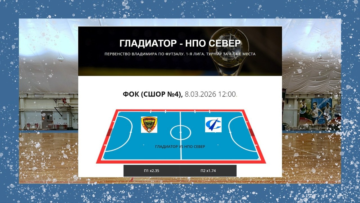 Первенство Владимира по футзалу. 1-я лига. Турнир за 8-14-е места. 08.03.2026 г. Гладиатор - НПО Север 7:0 (2:0) Обзор
