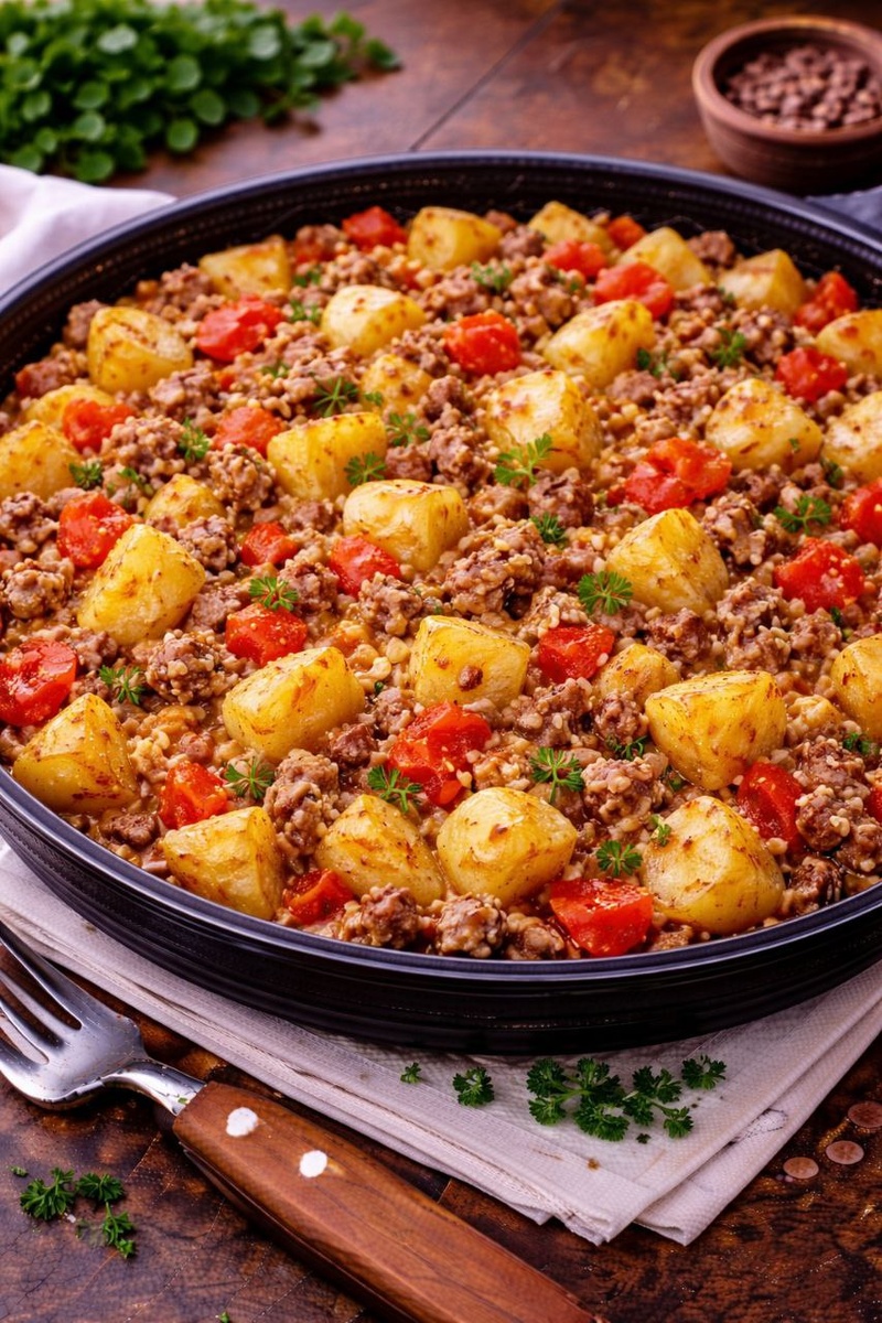 Иногда хочется чего-то сытного и домашнего, но без долгой готовки. Картошка и фарш — сочетание, которое почти всегда работает. А если добавить немного помидоров, получается сочнее и интереснее по вкусу. Я люблю такие блюда: всё готовится в одной сковороде, минимум посуды и максимум результата.
