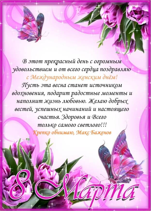 Хочу поздравить всех женщин, девушек с международным женским днём 8 Марта! Пожелать конечно мирного неба над головой, чтоб все желания исполнялись, пусть все ваши мечты станут реальностью.
