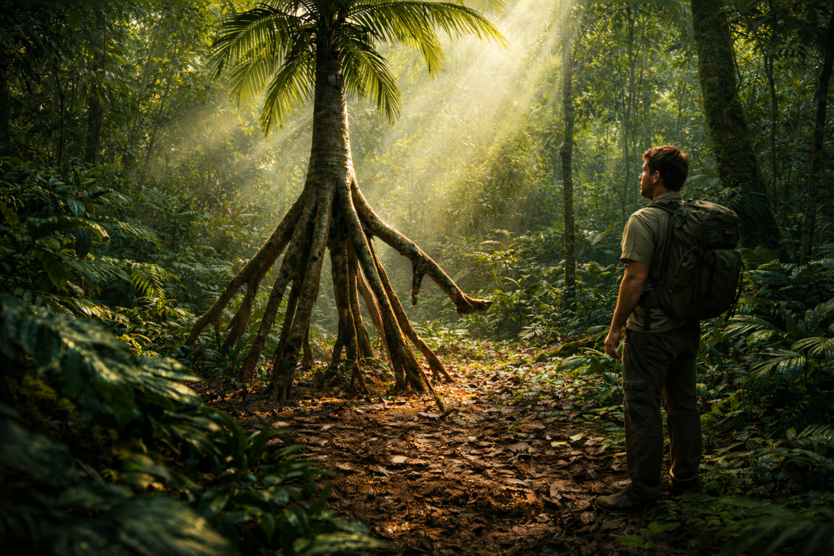 И оказалось... это не шутка. Есть такое дерево - пальма ходячая, или Socratea exorrhiza. Растет она в тропических лесах Центральной и Южной Америки. И вот что меня поразило больше всего: