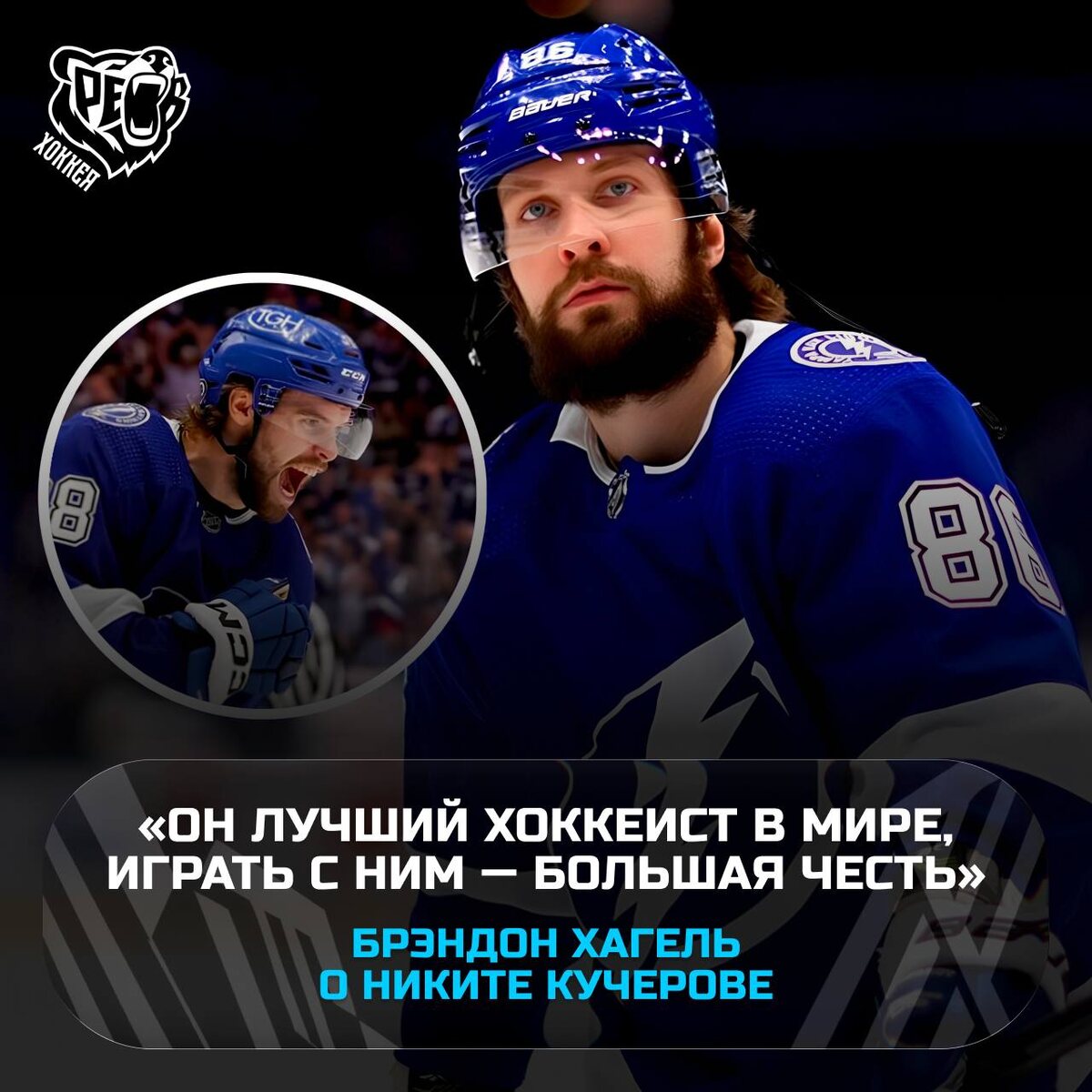 » Нападающий «Тампа‑Бэй Лайтнинг» Брэндон Хагель высоко оценил игру своего партнёра по команде Никиты Кучерова. «Даже не знаю, что сказать. По моему мнению, он лучший хоккеист в мире. Кучеров доказывает это своей трудолюбивостью и игрой. Играть с ним — большая честь» — цитирует Хагеля пресс‑служба клуба. 🐻 Слышишь? ЭТО РЁВ ХОККЕЯ