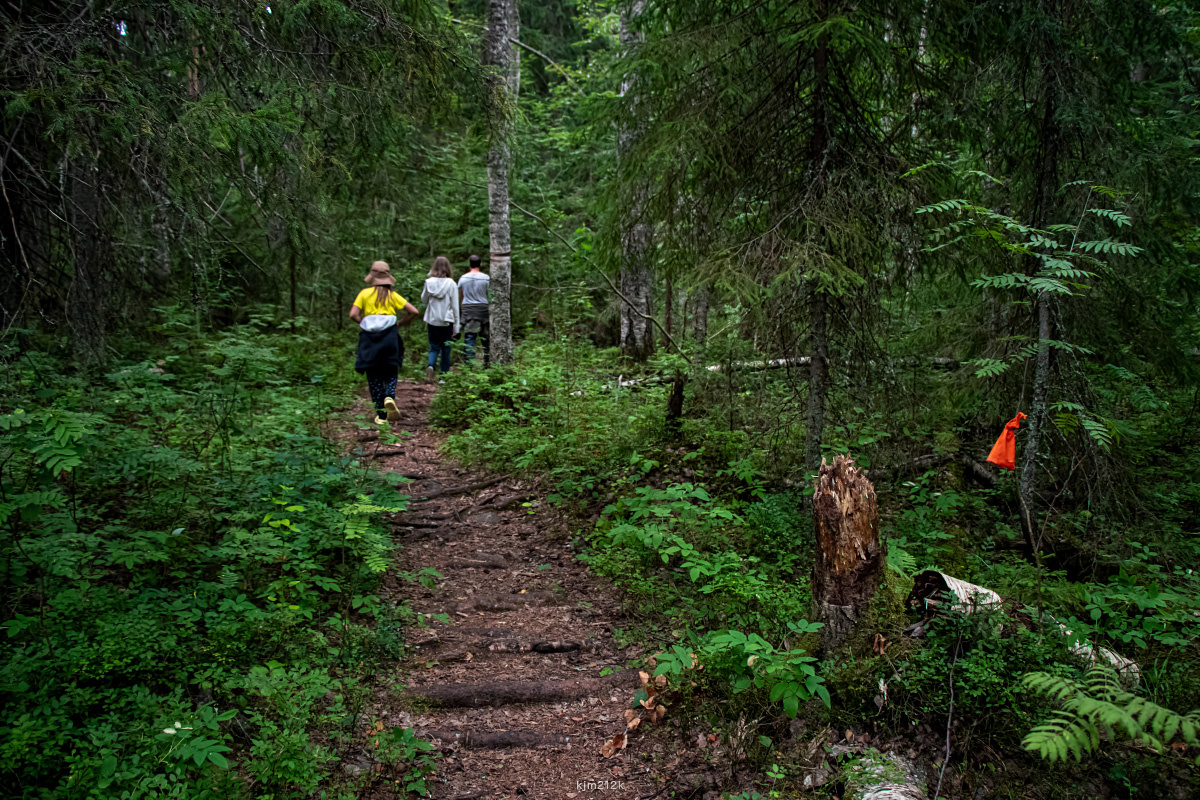 На следующее утро распрощались со столицей Карелии и поехали дальше. Правда, уехали недалеко - остановились всего в 20 км от Петрозаводска, у Старомурманской развязки, там где находится знаменитая карельская Долина зайцев. Тут же между трассой Кола и озером Укшозеро лежит урочище Шуйские скалы - небольшой скальный базальтовый массив посреди густого таёжного леса. Вообще, когда я планировала маршрут перед поездкой, у меня была идея посетить гору Сампо (62.038776, 34.096967): на карте место выглядело многообещающе - 40-метровая скала на узкой полоске суши между двух озёр, фоточки оттуда тоже были красивыми. Но почитала об этом месте поподробнее, и как-то расхотелось. Там теперь тоже "этнопарк", то бишь деревянный настил и лесенки, обильно сдобренные поделками, вырезанными из листового металла. Положительных отзывов много, но большинство из них восхищаются тамошним туалетом. Протяжённость тропы всего 400 м, а стоимость посещения - 400 р. По рублю за метр, нормаль