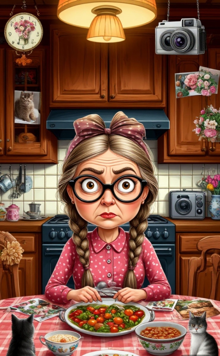 - Нет,Кулема!!!! Мне не надо холодца,я сыта!!!! Я вот водички попью да спать лягу!!!!- закричала маменька и шустрой ондатрой метнулась в комнату.
