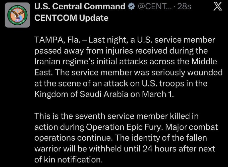 7 American soldiers now killed in Iran war — US Army