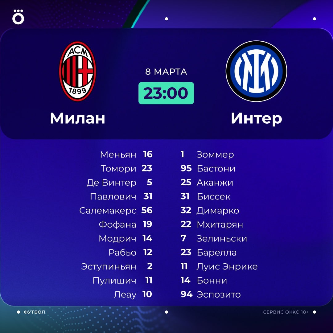 А вот и стартовые составы на миланское дерби! ⚽⚽