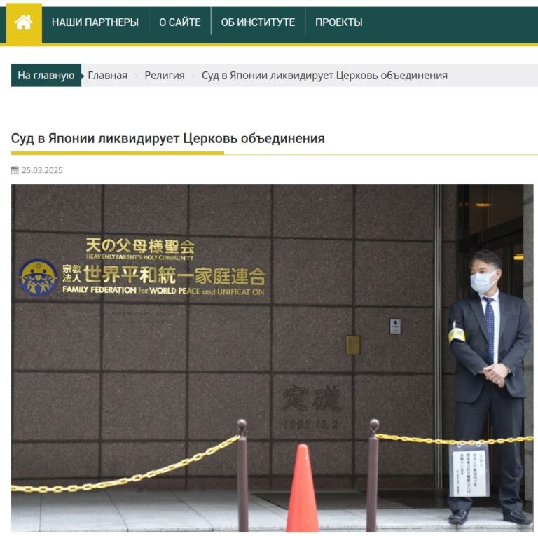 25 марта 2025 года на сайте Института религии и политики была размещена статья «Суд в Японии ликвидирует Церковь объединения». ИИ сделал экспертный анализ этой статьи:
