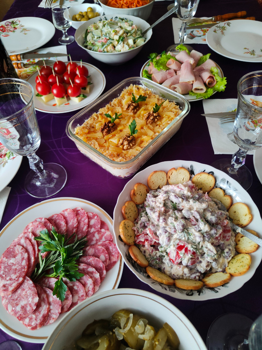 Куриные крылышки с картошкой я, к сожалению, не сфотографировала. Вспомнила об этом ровно в тот момент, когда их уже съели. Эта забывчивость объясняется тем, что я полностью погрузилась в атмосферу праздника и поздравления от наших любимых мужчин 😁