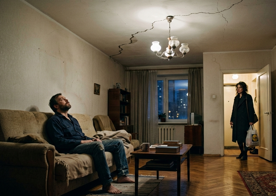 Она собиралась быстро — вещи были разбросаны. Трещина в спальне всё так же тянулась от люстры к углу. Ему вдруг безумно захотелось встать, достать шпаклёвку, шпатель и наконец заделать её. Просто чтобы сделать хоть что-то полезное. Но он не мог пошевелиться. Сидел, смотрел и ждал.
