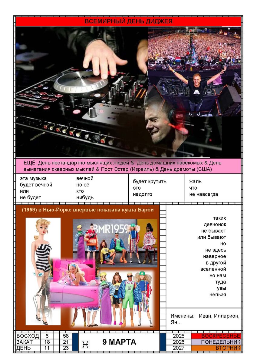 КАЛЕНДАРЬ 9 МАРТА