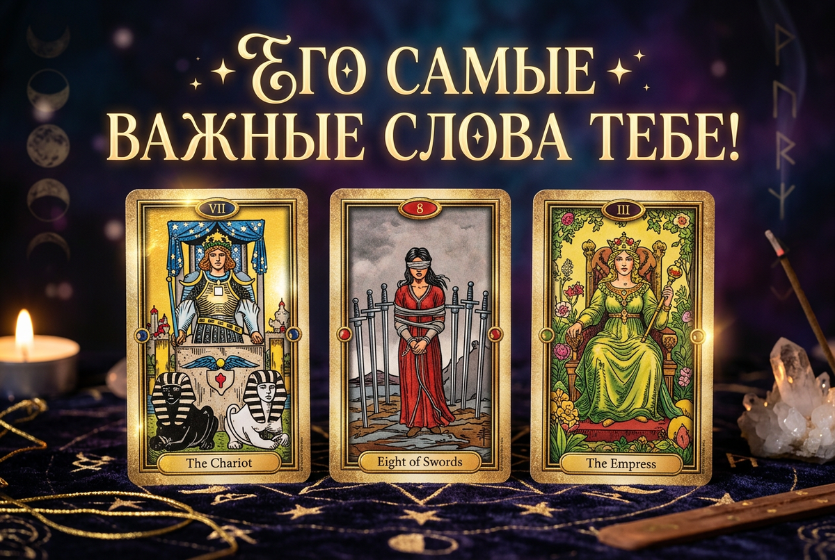 Этап 1 — уже происходит. Он уже говорит тебе о своих планах, целях, движении (Колесница). Это его способ сказать «я стараюсь». Прислушайся: когда он рассказывает о работе, о деньгах, о будущем — он на самом деле говорит о вас.