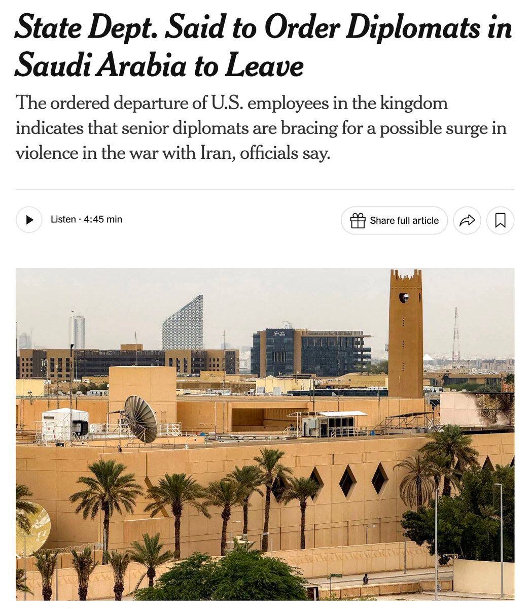 US ORDERS DIPLOMATS IN SAUDI ARABIA TO LEAVE — NYT