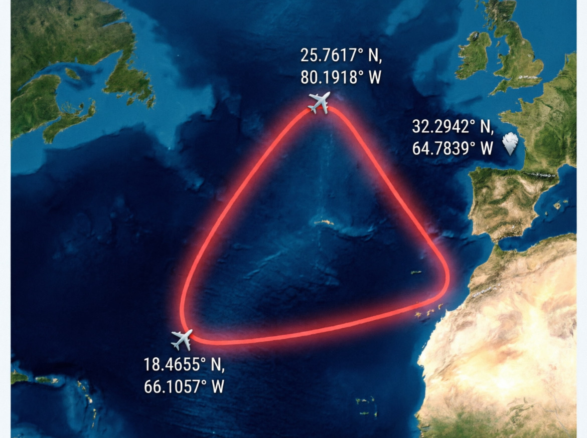 Между Майами, Бермудскими островами и Пуэрто-Рико. Около 1,2 миллиона км². Статус – необъяснимо опасная зона. Что, в целом, такое Бермудский треугольник? Он находится в Атлантическом океане. Здесь очень часто бесследно пропадают сотни кораблей и самолётов. А самое главное, не найдены никакие обломки. Никакие тела. Пустота. На картах это место не обозначается каким-то странным. Но моряки и лётчики знают, что здесь происходит что-то не то. Этот треугольник смог поглотить в себя 8000+ человек, 150+ судов и около 20 самолётов. Мы говорим только о зафиксированных случаях.