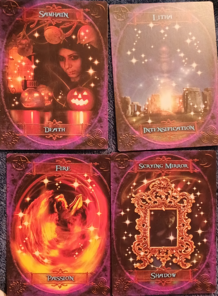 Карты из колоды Оракул «Мудрость ведьм». Каждая карта несет в себе определенное послание о грядущих переменах и внутренних состояниях.