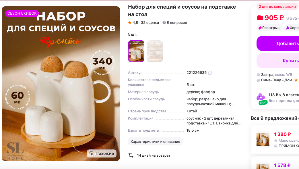 набор для специй и соусов на стильной подставке с Wildberries (арт. 221226635).