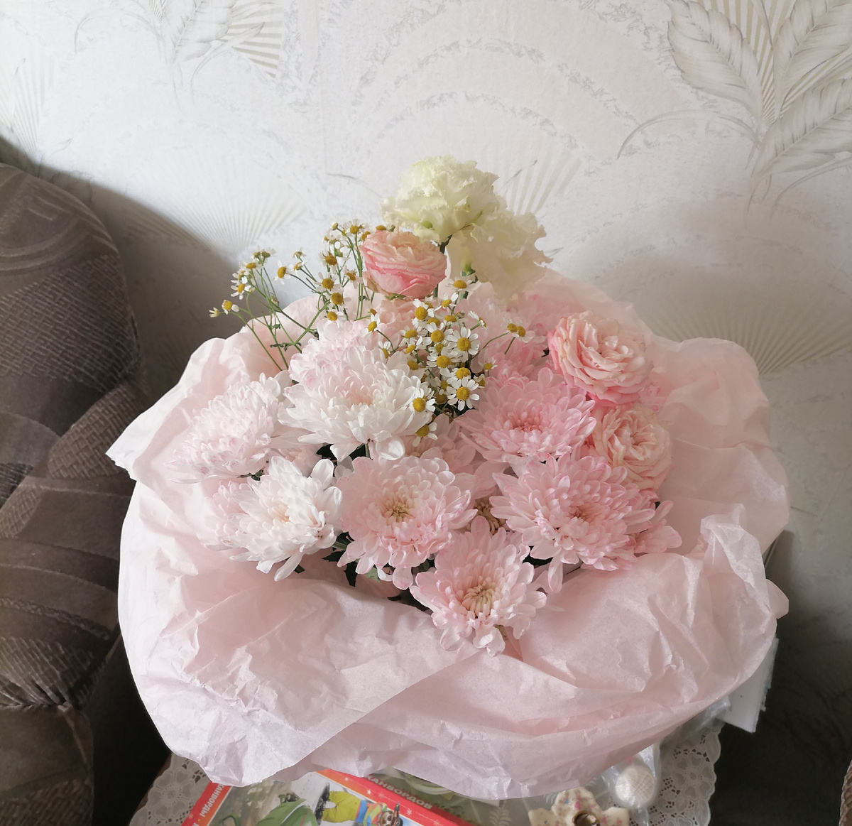 Раньше в этот день собирались все мои дети и внуки, приезжали младшие из Новосибирска. Что может быть лучше – быть со своей семьей в свой день рождения. В этот раз свой день рождения я провела одна. Вернее, с мамой, но она даже не в курсе, что у меня был день рождения, как скорее всего не в курсе, что я ее дочь. Но хорошо хоть в этот день она была спокойная. Ну я почти весь день провела с телефоном. Звонили дети, внуки, писали в нашем семейном чате поздравления. Звонили родственники, подруги, разговаривали, переписывались, перекидывались открытками. А потом с доставкой мне принесли красивый букет – хризантемы и розы в очень нежных тонах – это мне отправили старшие внуки, которые уже работают. И конечно, еще раз повторю, самый замечательный подарок на день рождения – приезд моей Лерочки, хотя она уже уехала, но все равно погостила как раз перед праздниками. Потом я сходила прогулялась, зашла в магазин и прикупила готовой еды, для одной себя возиться и готовить неохота (у мамы своя диет