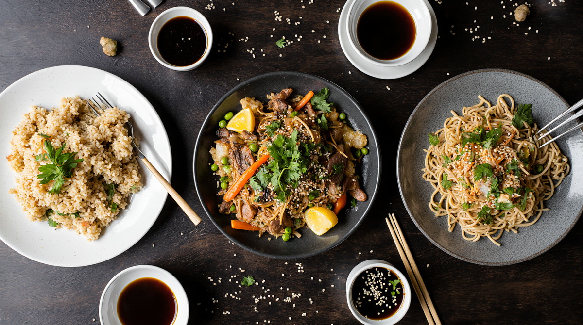Рис или Лапша: 3 рецепта блюд в воке для быстрого ужина (Жареный рис с яйцом, Фунчоза с мясом, Лапша Соба с грибами)