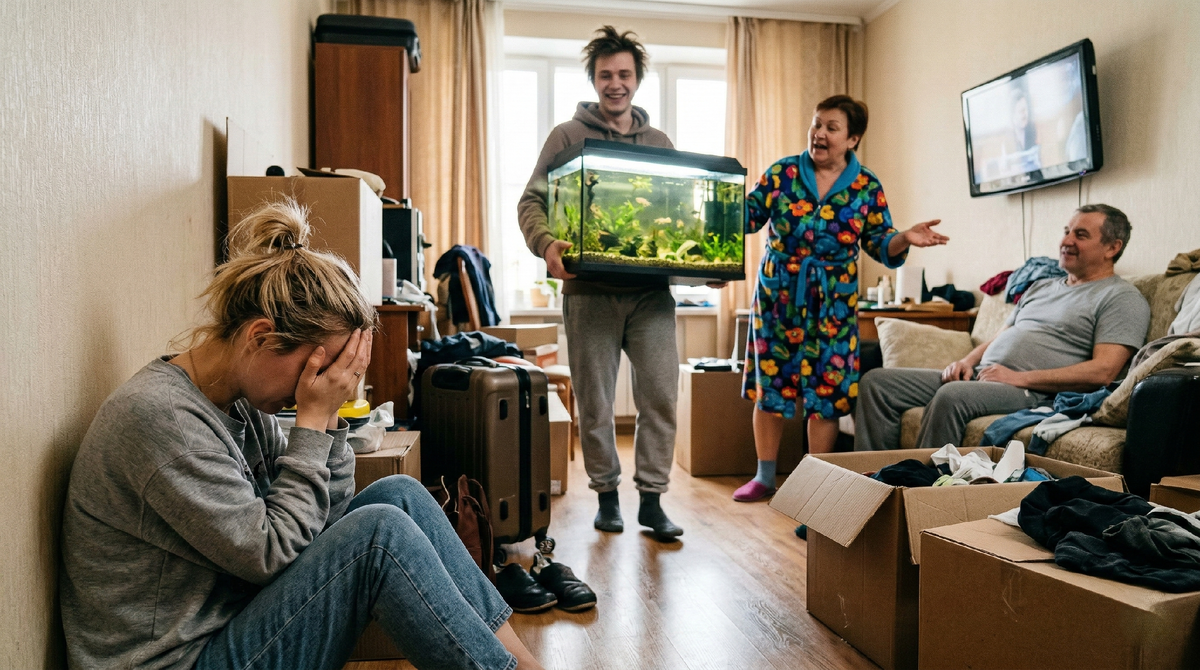 Открыв замок, я застыла. На пороге стоял их сын, мой двоюродный брат Виталик, с тремя чемоданами и огромным аквариумом в руках. «Мать звонила, сказала, тут места полно и кормят на убой, вот я и решил перебраться поближе к центру!» — радостно оскалился он.
