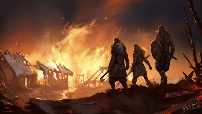 На самом деле было так. Торольв из Согнефьорда сказывал - Нет, берсеркская наивность выглядит совсем не так. В одном прекрасном древнем северном фьорде стоит городище Нидароса. Юнглинги там росли разные, некоторые были совсем не против лёгкой наживы. И по хижинам полушёпотом передавались россказни, как эту самую наживу получить. Надо выйти весной к пристани, причалит драккар. Спросят - работаешь? Надо ответить "да", ну а дальше само пойдёт. Один молодой берсеркер из какого-то лесного племени услышал эти разговоры. Кушать хотелось, и он пошёл поздней весной к пристани. Стоит на досках, причаливает ладья, трое хускарлов спрашивают - работаешь? Да! Ну прыгай. Берсеркер сел за вёсла, приплыли на какой-то Линдисфарн. Ему говорят, ну иди к саксам, возьми с них данегельд и приходи. Берсеркер ушёл, а хускарлы решили мухоморов наварить. Да, ныне всё это запрещено законами Хальфдана Чёрного и очень осуждается в Норвегии и Дании, но было именно так. Сварили, начали ржать, потом бросали кости с ру
