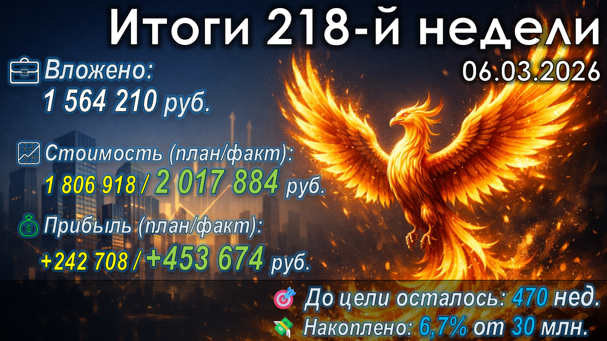 Поэтому сегодня я не меняю курс и не гонюсь за ушедшим поездом. Я спокойно смотрю на отставание, как черепаха, которая знает: её главный соперник — не суетливый заяц с его спринтами, а время. На этой неделе заяц промчался мимо, но наша дистанция — жизнь. Итог 218-й недели: портфель символически снизился на -1 373 рубля, но курс не меняем. Вперёд! 🐢🚀