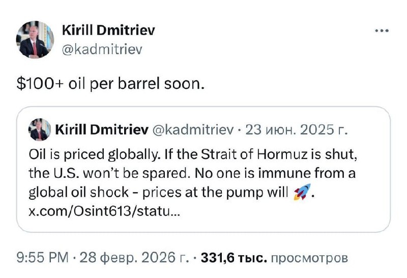 'US won't be spared' — Strait of Hormuz shutdown & today's $100 oil prophesied by special presidential envoy Kirill Dmitriev