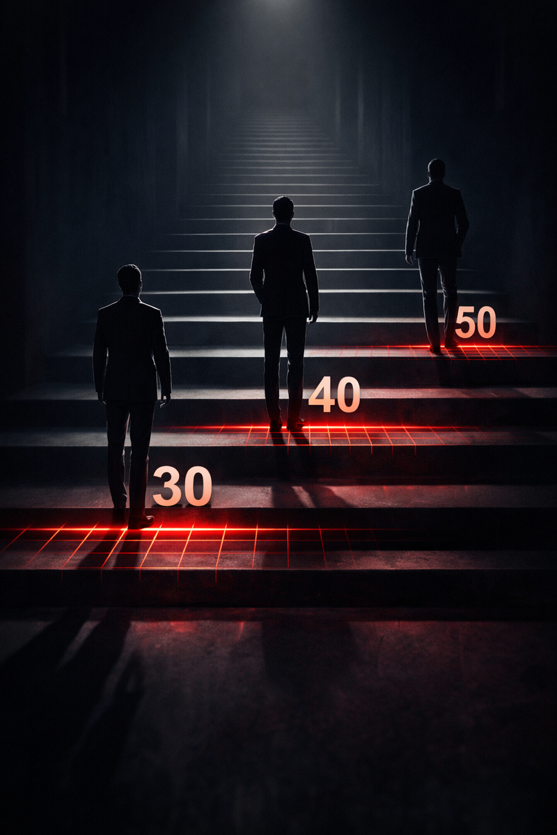 • 30–40 лет: Первый высокий пост и риск трансформации амбиций в преступный путь.