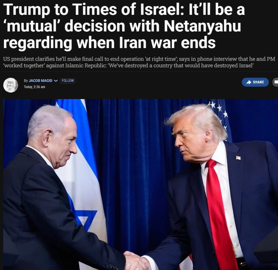 Trump says 'when Iran war ends is mutual decision with Netanyahu'
