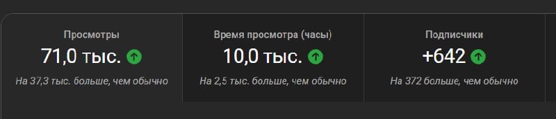 !🤗 Стата за месяц прям поднялась. 10000 часов просмотра это означает что вам очень нравится контента. Да для ютуба 71 просмотров это мало, но при этом у нас еще есть Твич. Так же спасибо за поддержку в финансовом плане ребятам. Отдельное спасибо: Obscure_Silent Frost и Юра Павленко! Всем остальным тоже спасибо что приходите и поддерживаете. Сегодня с хожу к врачу и сделаю перерыв а со вторника мы с вами вернемся и добьём резик на 120% а потом уже и вернемся в РГГ.