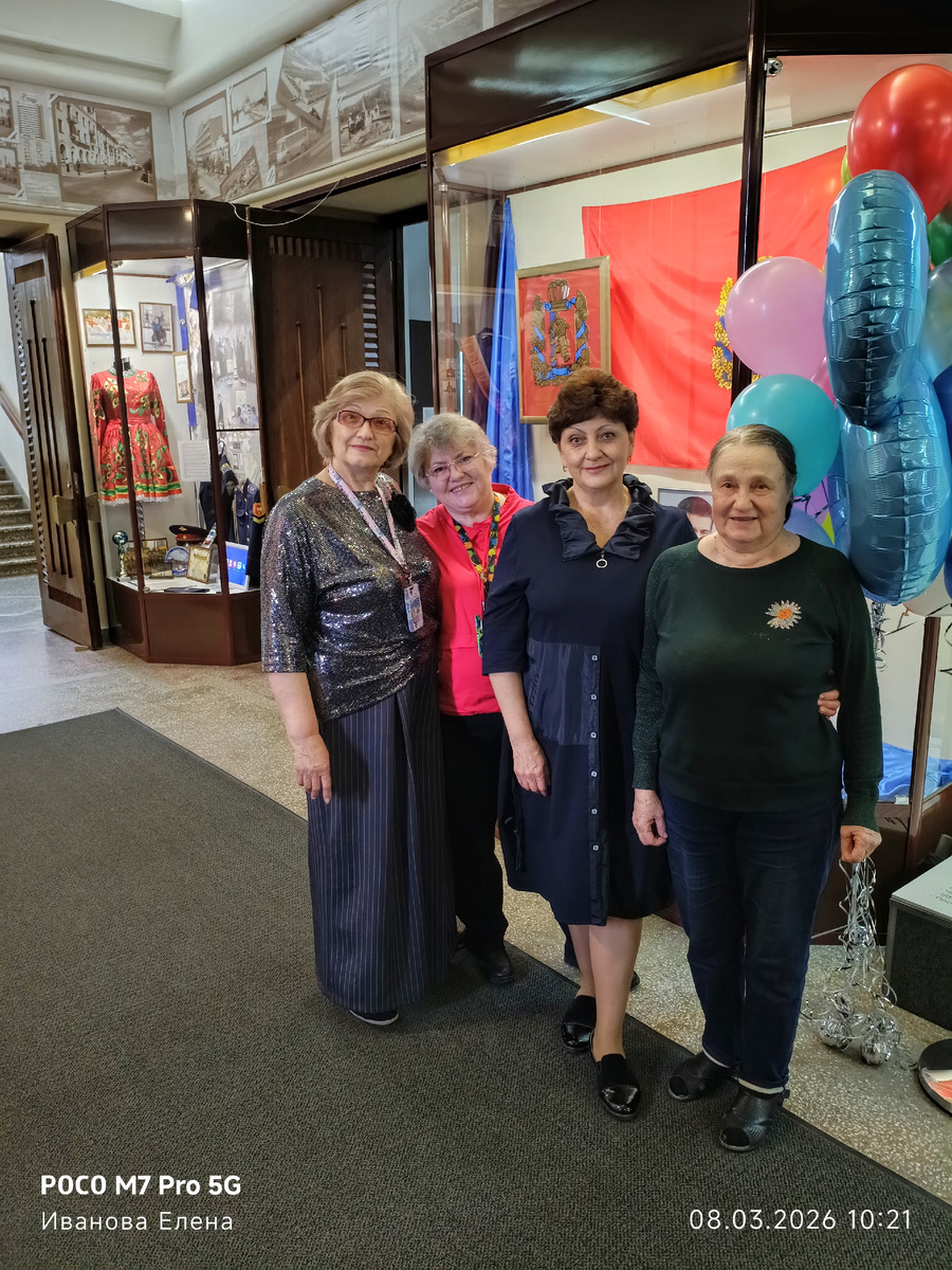 Здравствуйте, уважаемые читатели! Сегодня расскажу, как я провела 8 Марта. Да-да, тот самый день, когда все вокруг расцветают улыбками, дарят тюльпаны и говорят комплименты. А я… работала. И знаете что? Я абсолютно не жалею! Итак, 8 марта я провела на работе. Работать кто-то тоже должен, верно? Я сама вызвалась всех заменить в этот день. У коллег были планы: кто-то забронировал столик в ресторане, кто-то ждал гостей, а кому-то просто хотелось провести день с семьёй. Ну а мы с семьей отгуляли 8 Марта ещё 7-го числа — так что я спокойно вышла на смену за всех. Поздравляли с коллегами друг друга, говорю сразу: разрешение на публикацию фото взяла у всех. Справа налево: Надежда Евстафьевна, старейший сотрудник краеведческого музея, работает с самого его открытия после реставрации в 2000 году. Очень интеллигентная женщина, милая и добрая, и имеет огромные знания в том, что касается музея. Дальше Наталья Ивановна, это именно тот человек, к которому я первому подошла насчет работы, и она меня