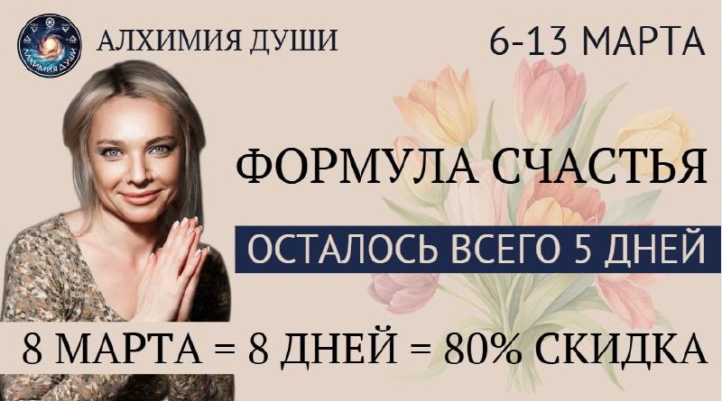 ❗️ ФОРМУЛА СЧАСТЬЯ – осталось всего 5 дней - только до 13 марта - минус 80% от цены на сайте на записи всех прошедших мероприятий на