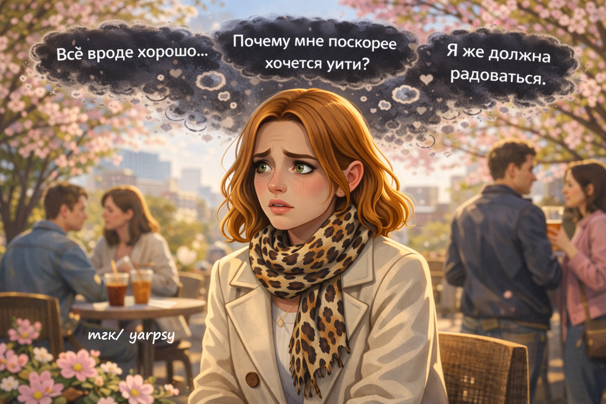 Иногда мы можем оказаться в ситуации, которую окружающие считают удачной: хорошая работа, отношения, новые возможности - со стороны всё выглядит логично и правильно. И всё же внутри может появляться странное ощущение напряжения: тревога, неуверенность, иногда даже желание отдалиться от того, что объективно считается хорошим.