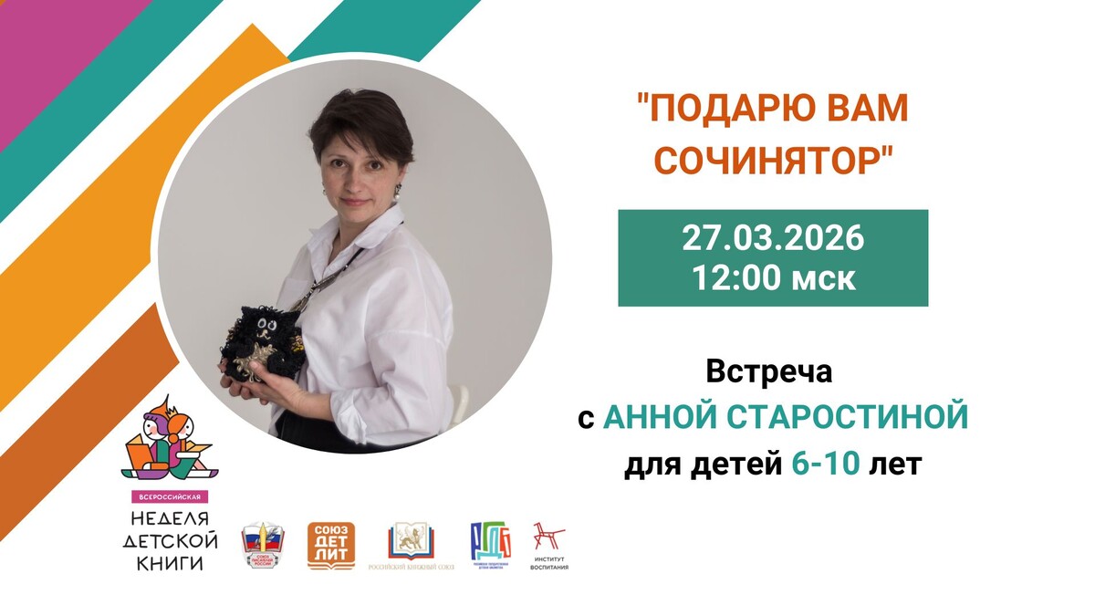 Анна Старостина — о том, как рождается вдохновение и почему встреча с писателем может подарить ребёнку его первый «сочинятор» Онлайн-встреча в рамках Недели детской книги — 27 марта 2026 года, 12:00 (МСК) Каждый ребёнок хотя бы раз придумывал своё слово. Смешное, странное, неожиданное — но своё. Именно с этого начинается творчество. Анна Старостина — детский писатель и креативный редактор журнала «Вверх тормашками» — умеет превращать слова в игру, а игру — в историю. Её встреча «Подарю вам сочинятор» — это не просто разговор о литературе, а настоящее путешествие в мир воображения, где буквы становятся инструментами, а ребёнок — автором. Уже 27 марта дети смогут перевернуть привычный мир, создать собственные тексты и понять: сочинять может каждый. — Ваша встреча называется «Подарю вам сочинятор». Что это за загадочный инструмент? Это воображение, внимание к миру или смелость придумывать своё? — Инструмент этот простой, как лопата. Но с помощью него можно накопать кучу идей. А потом вклю