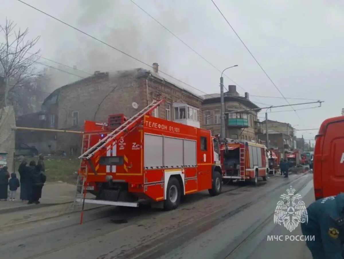 Еще кадры с места тушения пожара в заброшенном здании в историческом центре Ростова.
