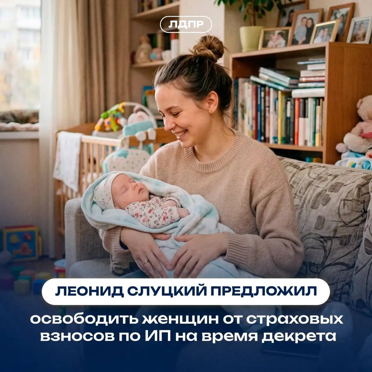 декрета Сегодня индивидуальные предприниматели обязаны платить страховые взносы на пенсионное и медицинское страхование вне зависимости от того, ведут они активно бизнес или нет. Для женщин-предпринимателей освобождение предусмотрено только на период ухода за ребёнком до полутора лет: в результате мама продолжает нести ту же финансовую нагрузку, хотя её возможности работать и зарабатывать в беременность и сразу после родов снижаются. Женщины постоянно стоят перед выбором: либо отказываться от развития своего бизнеса, либо откладывать рождение детей. Что предлагает ЛДПР? Лидер ЛДПР Леонид Слуцкий заявил, что это явная несправедливость: индивидуальные предпринимательницы не должны оказываться в уязвимом положении в момент, когда семья особенно нуждается в поддержке. Он предложил освободить женщин-предпринимателей от уплаты страховых взносов на время беременности и родов, а также на период ухода за ребёнком до трёх лет. Для мужчин-предпринимателей такая льгота может быть доступна, если