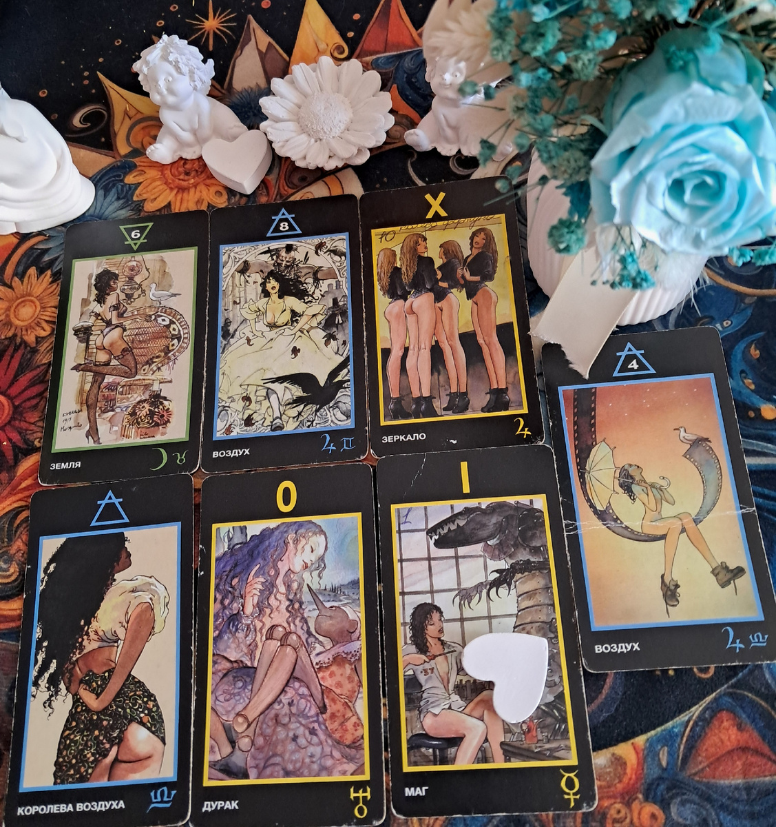 Твой расклад получился очень глубоким и многослойным. Весна 2026 года обещает стать временем важных перемен, внутренних открытий и неожиданных поворотов в сердечных делах. Карты говорят о том, что ты пройдёшь путь от ощущения скованности к свободе и активным действиям, но с обязательным заглядыванием в собственное «зеркало». Давай разберём по порядку.