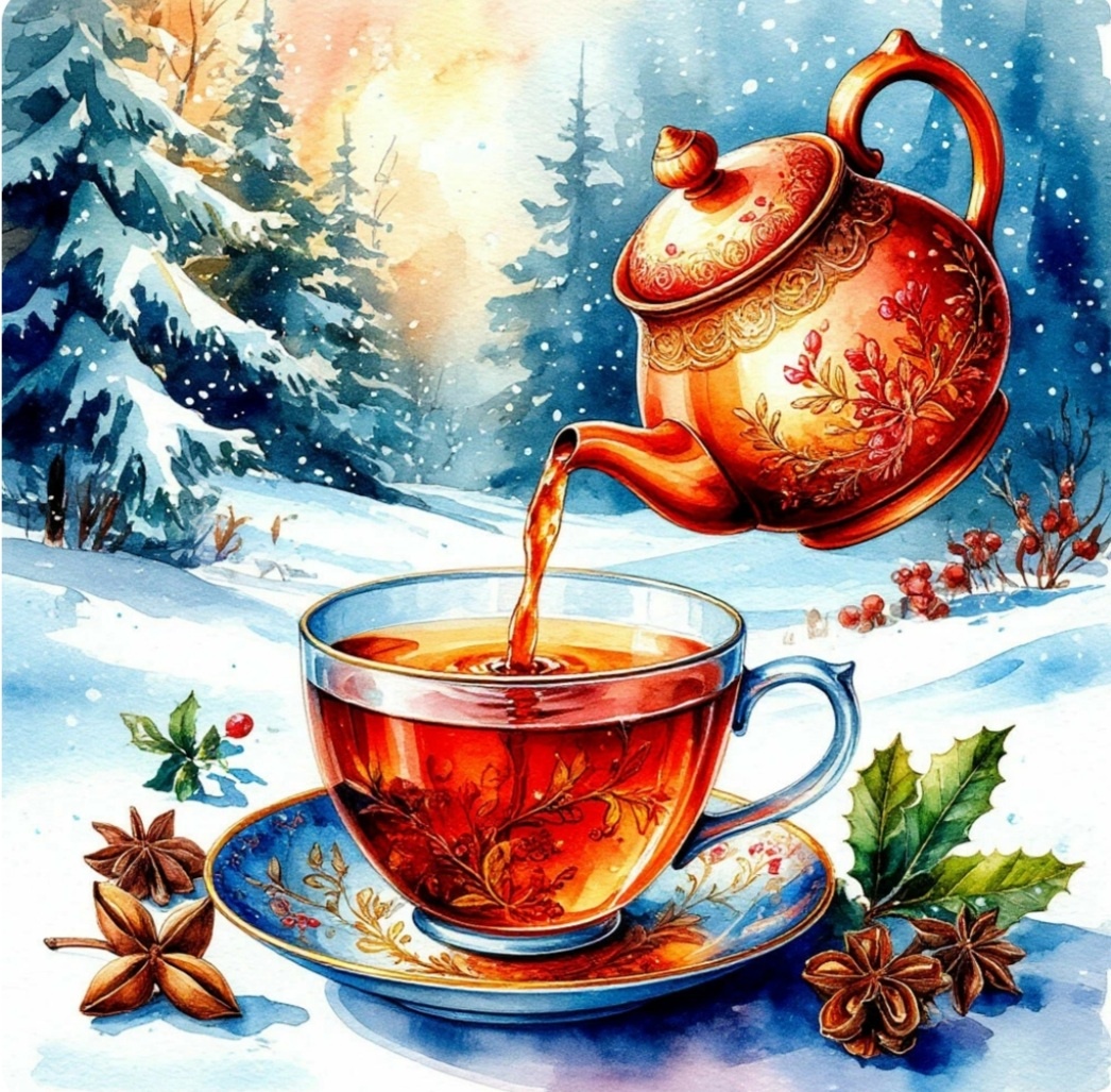 Завариваю травяной. Чабрец, мята. И ложка мёда. Мёд привозит мой папа- пасечник. Он густой, янтарный, пахнет летом, хотя за окном февраль.