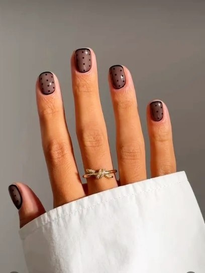 Удивительно, но маникюр с таким дизайном понравится даже любителям минимализма. Главное - правильно подобрать цвета. Идеально подойдут бежевые и полупрозрачные базы и нейтральная палитра (особенно белый и черный) для создания самого рисунка. Горошек вы можете носить не на всех ногтях, а, например, на одном. Такой маникюр будет выглядеть аккуратно и элегантно.