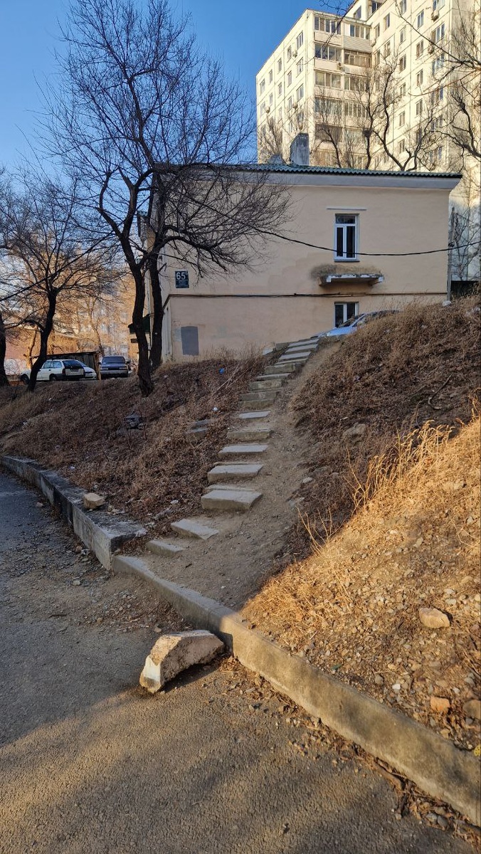 Пожилая женщина упала на лестнице на ул. Добровольского и сломала ногу. Прокуратура уже что-то среагировала. Интересно, а будет лестничный рейд как после трагедии у питстопа на Катерной был рейд питстопный с неизвкстными итогами? Вот вам на фото лестница у Красного Знамени 65. Красивая!