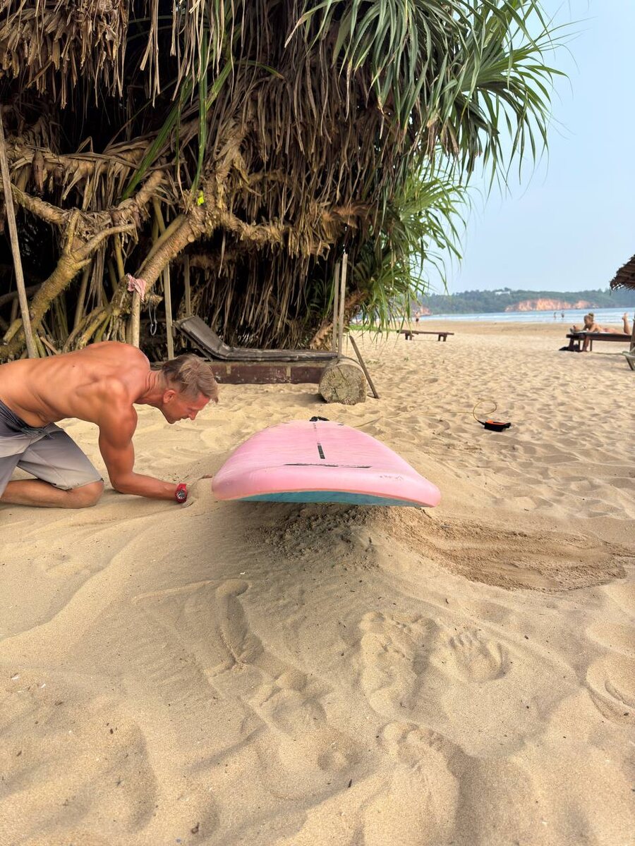 На первом мой тренер. Загорелый, сухой, поправляет доску на песке, готовясь к уроку. Он даже не смотрит в кадр, он просто занят делом и живет в моменте - такой чистый pure surf mode. На втором - собирательный образ успешного успеха, человек в пиджаке прикуривает сигару от горящей купюры Как думаете, кто из них счастливее? Тот, кто сжигает ресурсы ради статуса, или тот, кто по-настоящему свободен? Я писал вам про стертые в кровь коленки на серфе. Сегодня хочу продолжить эту мысль, потому что меня прямо накрыло одним инсайтом. Мы здесь много говорим про недвижимость, про инвестиции и приумножение капитала. Зарабатывать деньги это навык. Но то, как мы ими распоряжаемся и как мы себя при этом чувствуем, это уже искусство. Недавно я поймал странный кайф. Я пришел с пляжа, встал под душ и просто своими руками, куском мыла, постирал свою майку. Потом повесил ее сушиться на стул на лоджии. Скажи мне кто-нибудь месяц назад, что я буду от этого кайфовать, я бы рассмеялся. Мы привыкли к преми