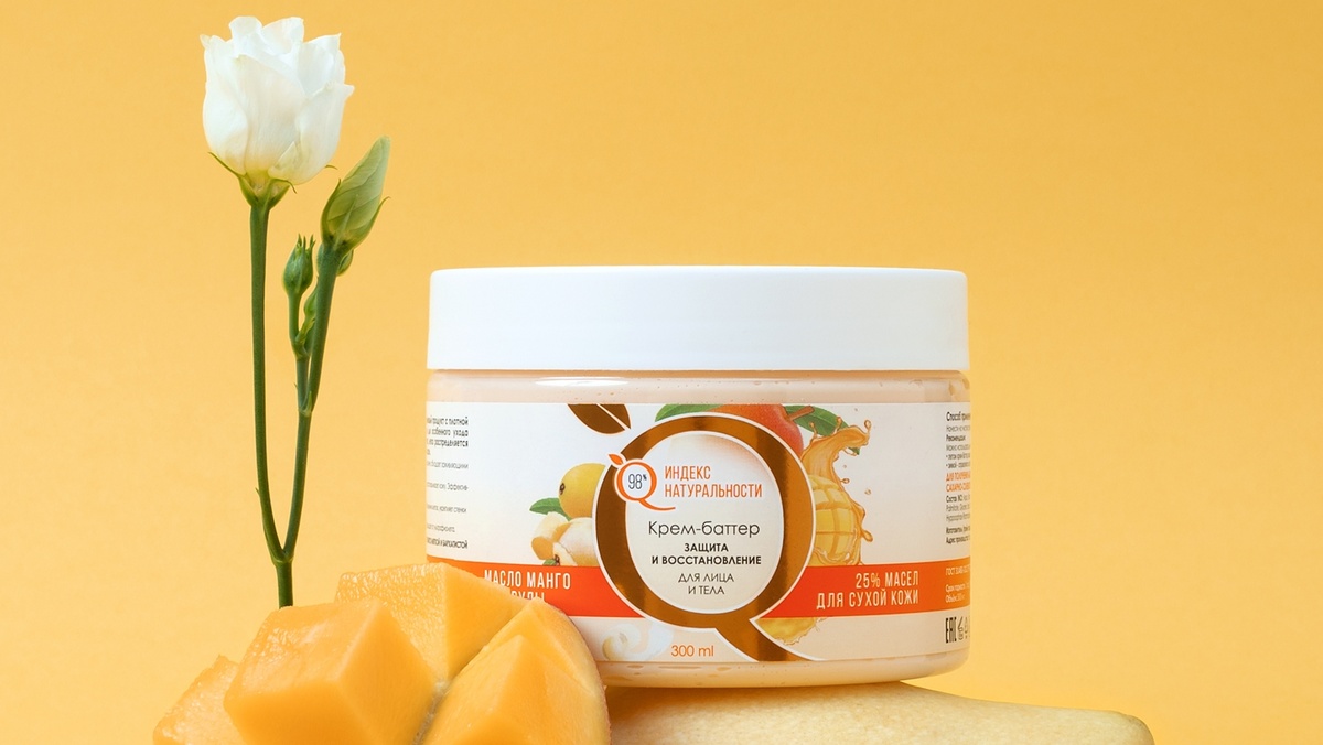 В прошлый раз, в рамках темы текстур мы разбирали легкие, но питательные кремы-йогурты. Сегодня поговорим о "тяжелой артиллерии" уходовых средств – о баттерах. Оговоримся, что имеем в виду именно косметические многокомпонентные баттеры, а не монопродукты в формате фасованных масел. Консистенция: это самый густой формат косметических продуктов, богатый натуральными ингредиентами и имеющий плотную маслянистую текстуру. В основе – вода (неизменная база для всех средств), эмульгатор и твердые масла. Основные свойства: глубокое питание и увлажнение кожи; решение проблем сухости и раздражения. Преимущества: 1. Увлажняющий Крем-баттер Манго Защита и восстановление для лица и тела 25% масел в составе: Масло-баттер Манго: обладает увлажняющими, заживляющими и антиоксидантными свойствами. Питает кожу, защищает от ультрафиолета, придаёт бархатистость и предотвращает шелушение. Масло-баттер Марулы: благоприятно воздействует на сухую и раздраженную кожу. Легко впитывается, успокаивает и смягчает
