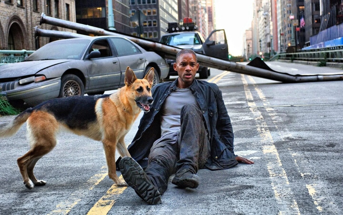 Безусловно, одной из главных звезд фильма стала овчарка Сэм (Сэммит). Роль бессловесного, но самого верного друга Роберта Невилла исполнили две собаки: Эбби и Кона. Эбби была найдена в питомнике всего за несколько недель до съемок и практически не имела подготовки. Ей потребовался месяц интенсивных тренировок. Однако Эбби категорически отказывалась играть в «принеси мяч» (фетч), поэтому для сцен с апортировкой пришлось использовать Кону.