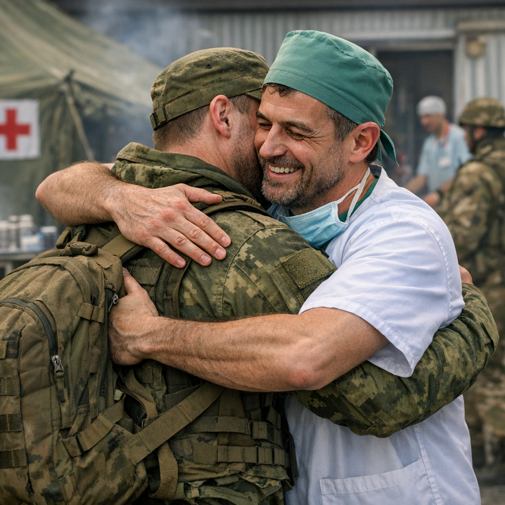 Денис кивнул. Разговоры подождут. Работа – вот что было сейчас главным. Он подхватил свой рюкзак поудобнее и зашагал в жилой модуль, чтобы быстро привести себя в порядок с дороги. Вскоре пришёл в хирургический модуль. В коридоре пахло привычно и родно: лекарствами, хлоркой, йодом и еще чем-то неуловимым, что было неотъемлемым запахом войны и спасения. Здесь его ждали. Здесь он был нужен.