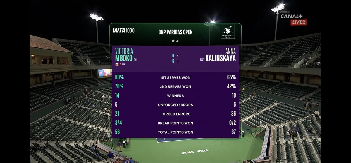 ⚡ Indian Wells R3: V. Mboko [10] def. A. Kalinskaya [23] 6-4, 6-1